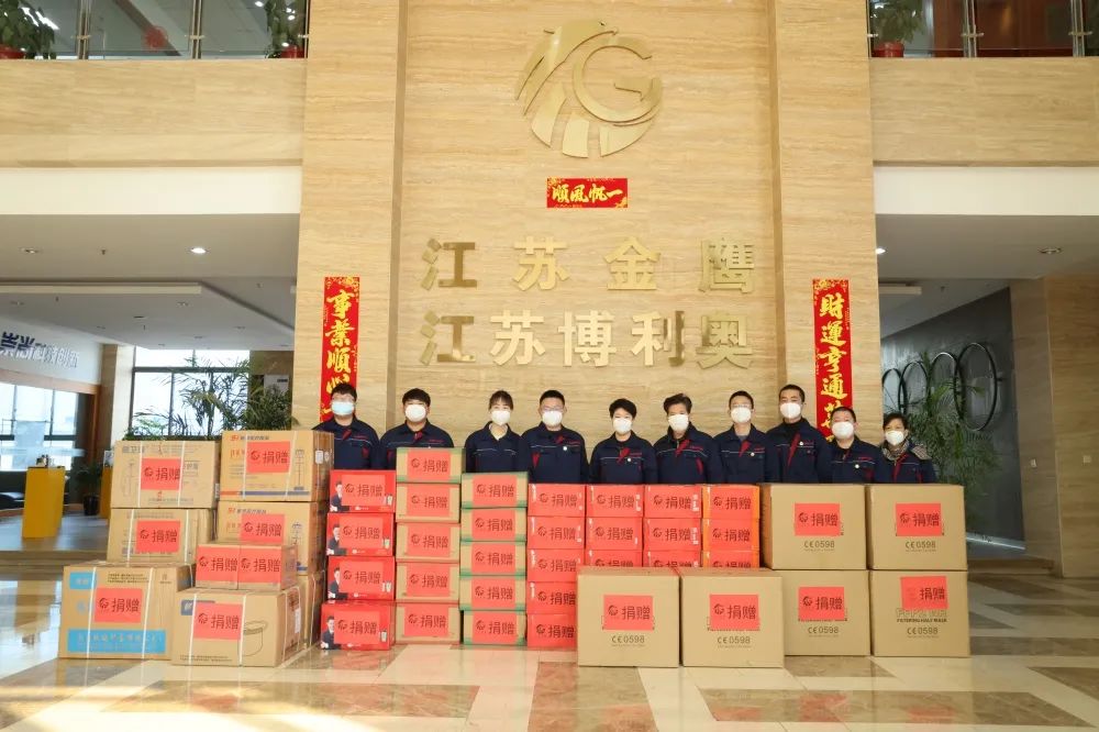 本批捐贈:防護服,KN95口罩、面罩、醫用手套、免洗凝液、零食等物資一批。一箱箱防疫物資凝聚著江蘇金鷹流體機械全體員工的愛心與溫暖,更承載的是一份份責任與擔當。